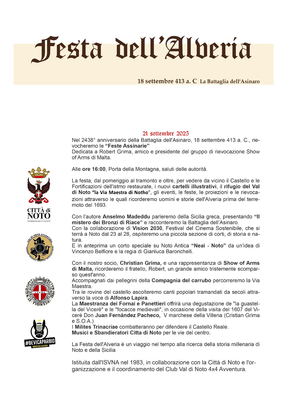programma Festa dell'Alveria 2025 - I.S.V.N.A. - dal 1970 al servizio della cultura netina